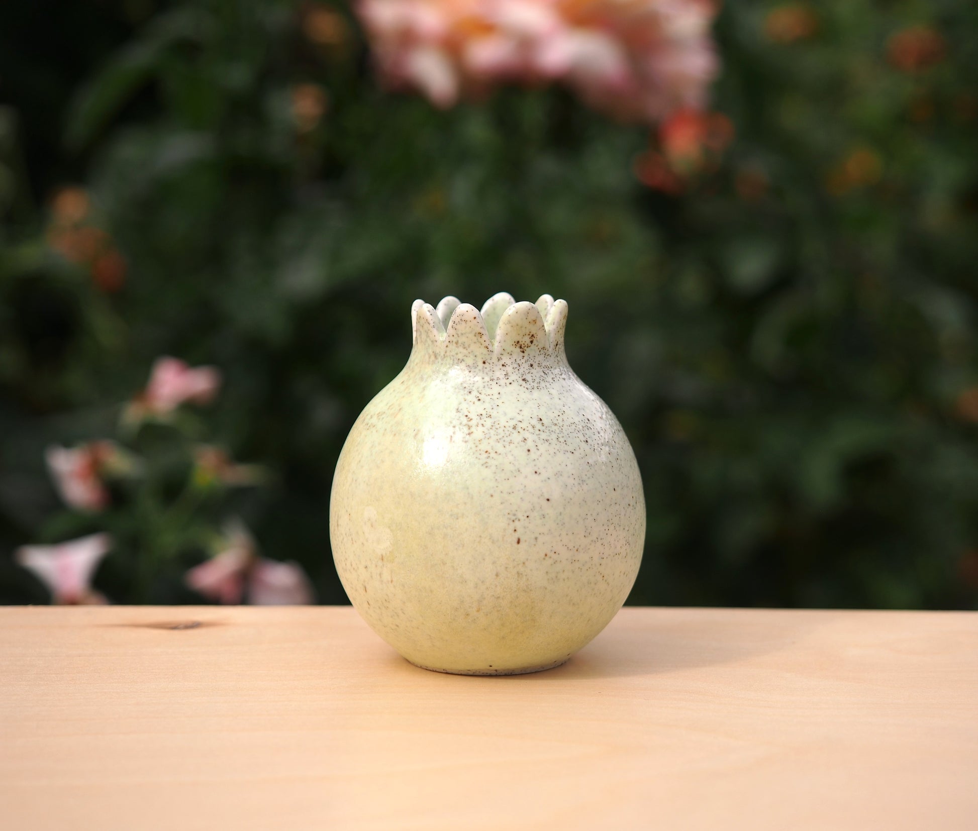 Brighten up any space with this cheerful Bud Vase! Its ruffled rim and colorful glaze make it the perfect little home for a few small stems, adding a touch of fun and whimsy wherever it sits. A playful way to celebrate even the tiniest bloom!