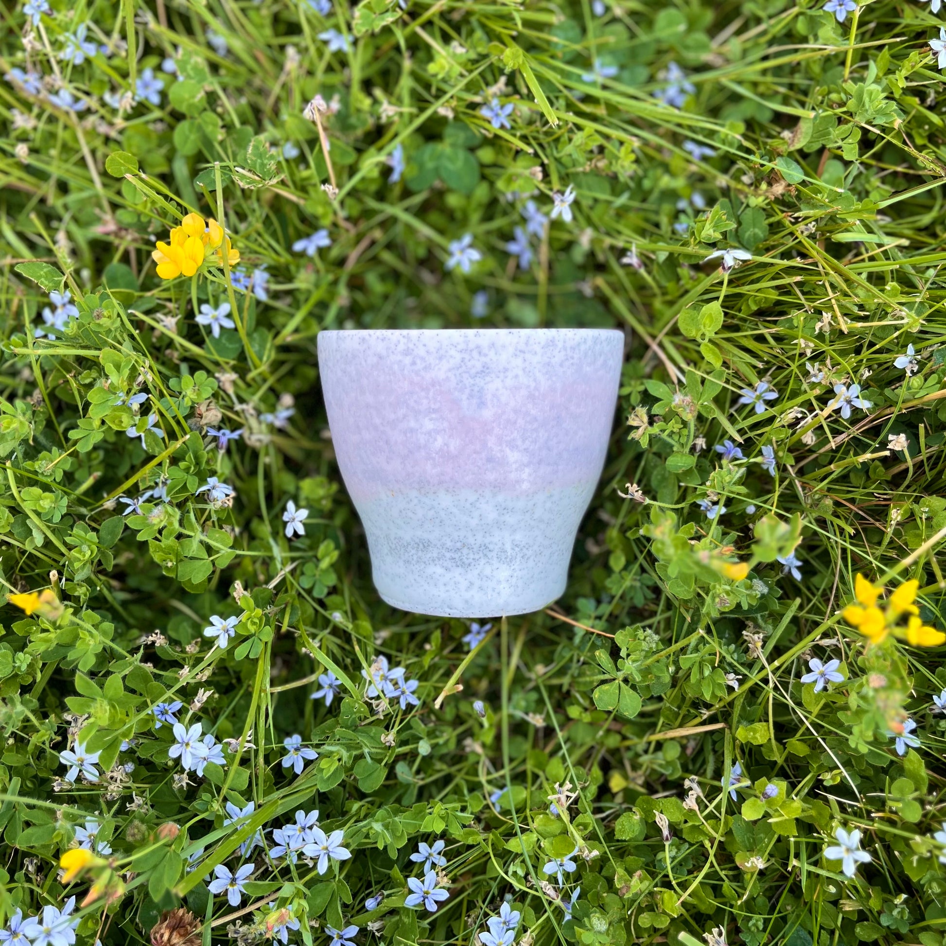 A darling 6oz cup. Easy to hold and thrown a bit thicker, it's great for kids! -OR- an evening affogato, tea, or a trendy mini cocktail for the adults. Glazed fully with our clear glaze, then dipped halfway in a second glaze of your choice to get that sweet drip.