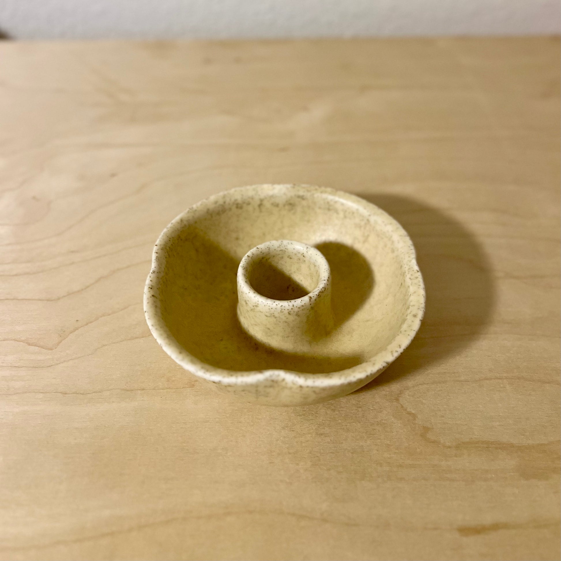 Bring a little frill to your tabletop with this extra special Candle Holder. Each Candle Holder was made one of a kind and hand-scalloped, clover-pinched, or ruffled to reach peak cuteness.